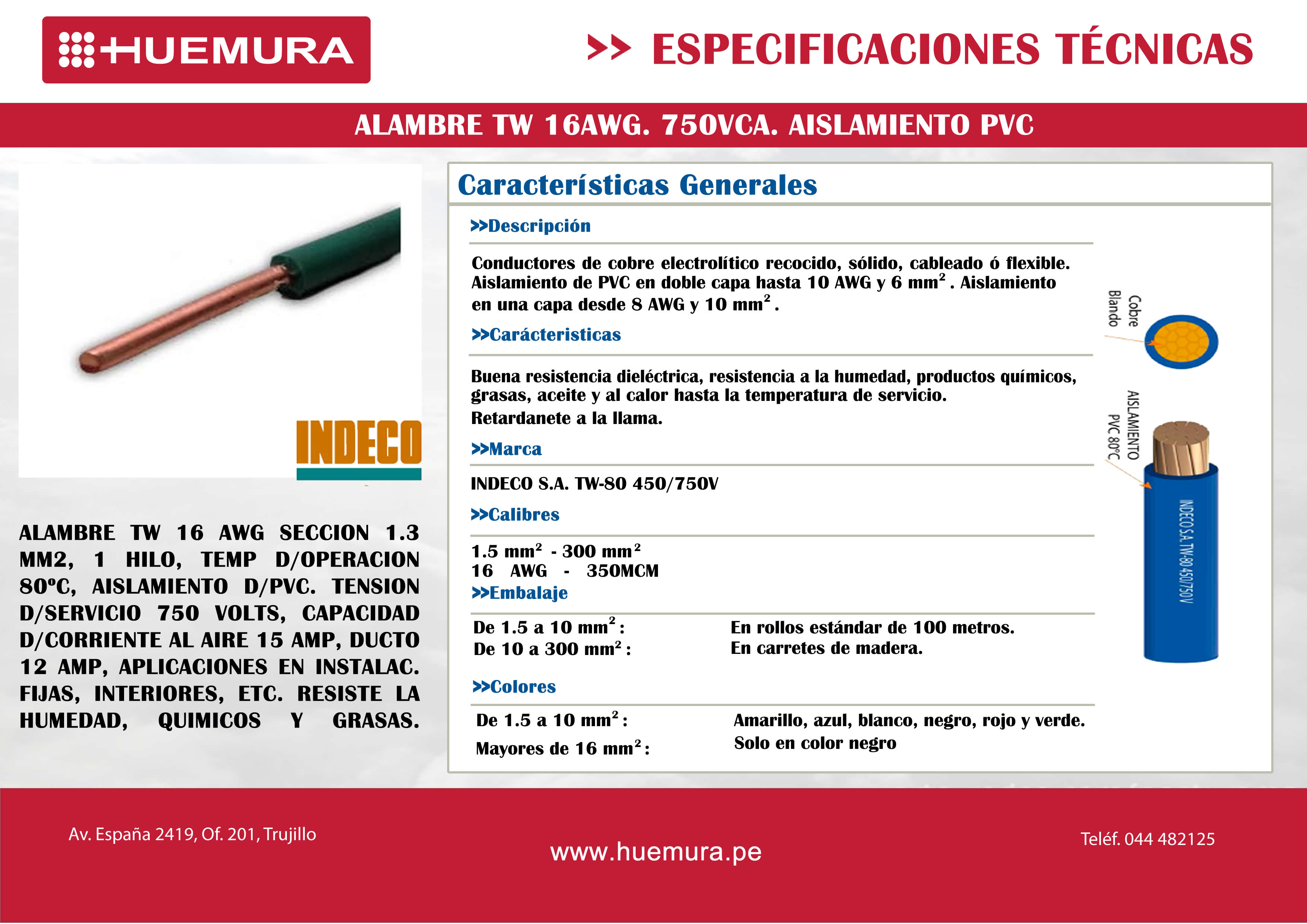 ALAMBRE TW 16 AWG SECCION 1.3 MM2, 1 HILO